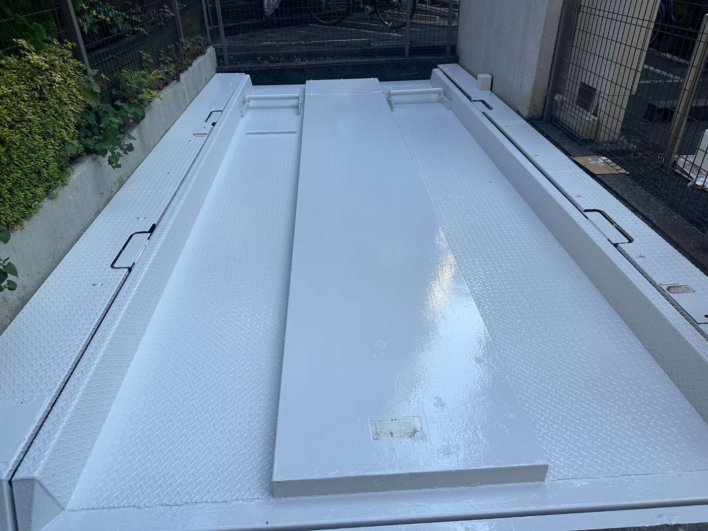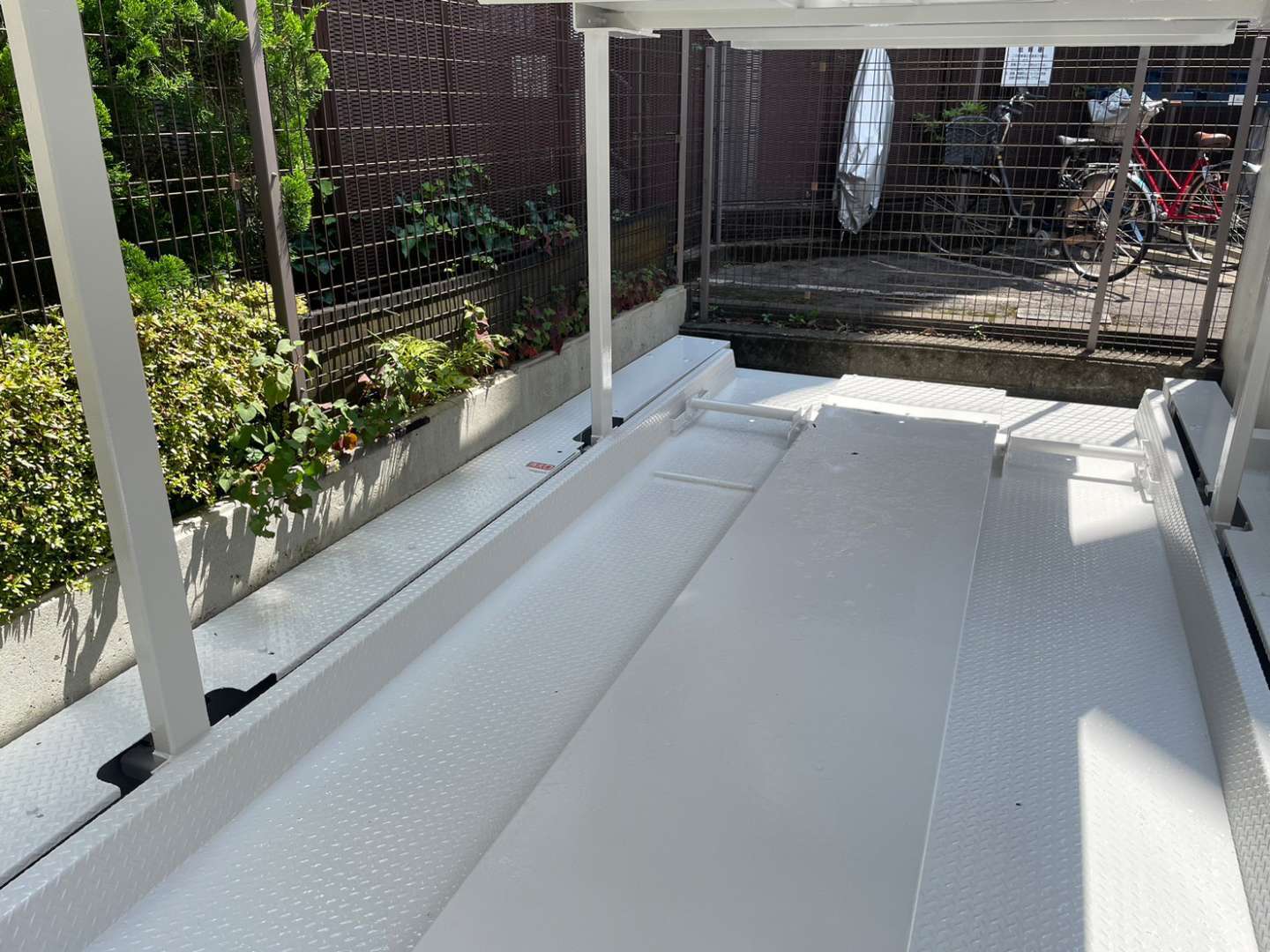 機械式駐車場は車が止まる為、専用塗料にて塗装しました。