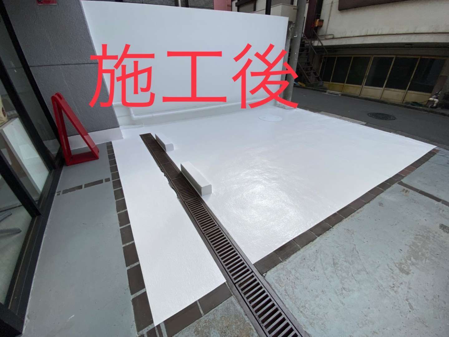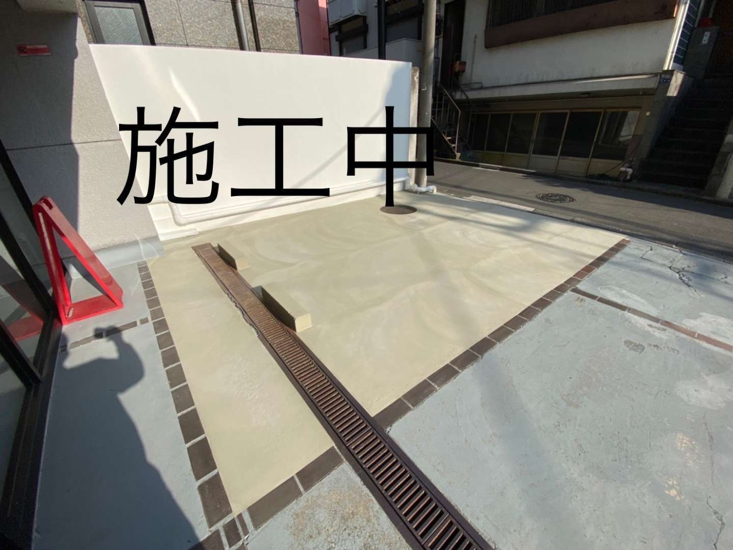 下地からしっかりと処理するため全面コテを使いカチオンを流して、塗床を致しました!